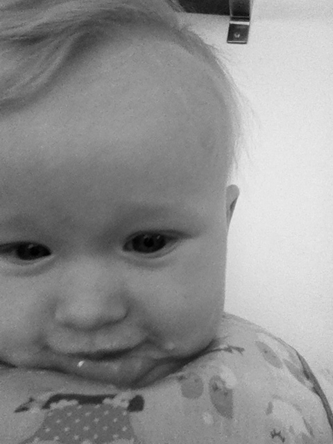 10:40 am: I had an appointment at eleven, and a few minutes before I needed to leave the house with Shira I went to the place I always keep my keys (and by always I really do mean always), except that they weren't there. My brain was then flooded with a memory of my leaving them in the stroller the day before, and then another memory came--that of my lovely husband putting the stroller away in the car for me. The locked car. With my keys and stroller in it. And my ergo. And my sling. But no matter, I had an umbrella (yes, it was pouring)! And a baby wrap intended for tiny babies! I squeezed Shira in and was out the door.